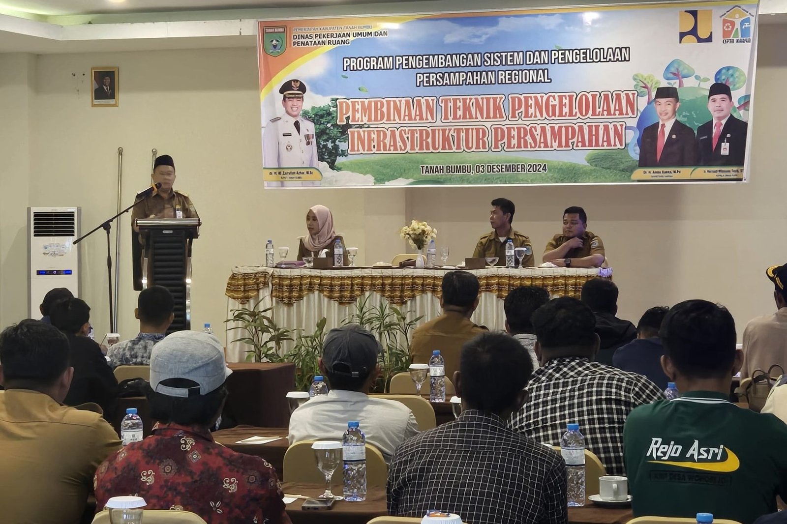 Asisten Perekonomian dan Pembangunan, Eryanto Rais membuka pembinaan teknik pengelolaan infrastruktur sampah, Selasa (3/12/2024) di Batulicin. Foto : Mc TanbuBATULICIN – Sebanyak 20 Kelompok Swadaya Masyarakat (KSM) mengikuti pembinaan teknik pengelolaan infrastruktur sampah. Kegiatan dilaksanakan oleh Dinas Pekerjaan Umum dan Penataan Ruang (PUPR) Kabupaten Tanah Bumbu, Selasa (3/12/2024) di Batulicin.