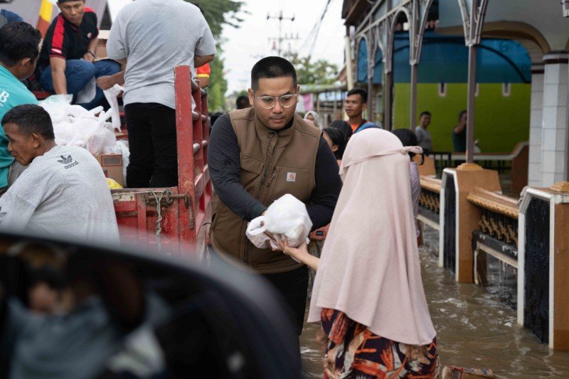 Dalam kegiatan tersebut, Fariz Adam Ramadhan membagikan bantuan berupa makanan instan serta salep kulit untuk membantu mengatasi gangguan kesehatan yang kerap dialami warga selama banjir.