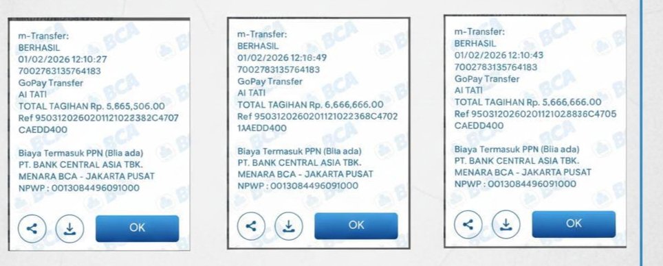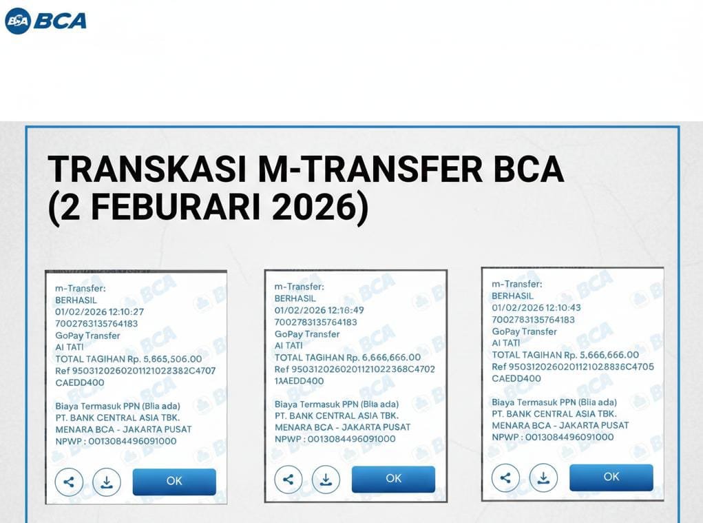 Proses ini berulang hingga korban melakukan beberapa kali transfer, dengan total keseluruhan mencapai