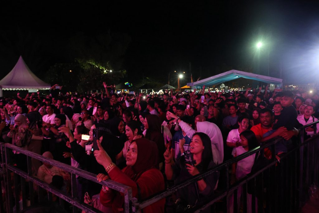 Suasana mencapai puncaknya saat Tommy Kaganangan membawakan deretan lagu andalannya yang disambut riuh oleh para penonton yang memenuhi pesisir pantai.